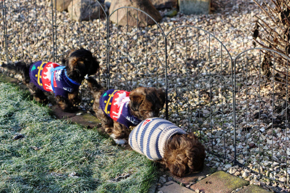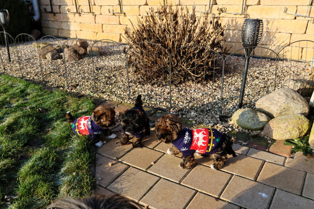 den Wintermäntelchen. Die waren bei allen Welpen im Umfang zu groß und „doof“ fanden sie „das